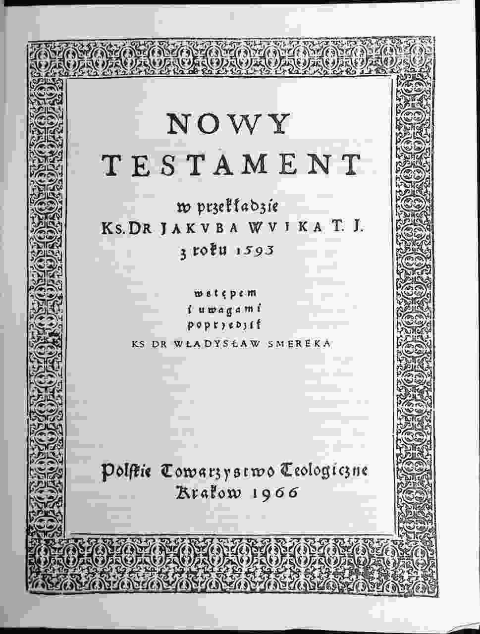 Nowy Testament w przekładzie ks. dr. Jakuba Wujka TJ z roku 1593 (1966)