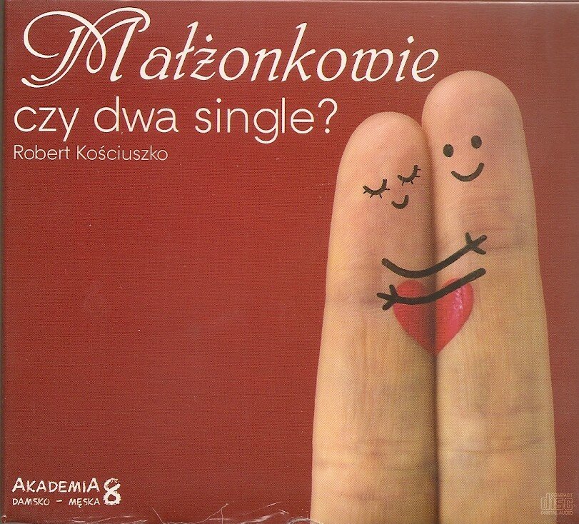 Kolejna już ósma płyta CD z cyklu ”Akademia damsko-męska”, ty razem znany z powieści dla młodzieży Robert Kościuszko odpowiada na pytanie Małżonkowie, czy dwa single? Jeśli małżonkowie, to z pewnością nie dwa single! Mogłoby się wydawać, że właśnie taka jest teza ukryta w pytaniu tytułowym. Okazuje się jednak, tak podpowiada doświadczenie, że można żyć w małżeństwie, a jednocześnie być dla siebie zupełnie obcymi ludźmi. Robert Kościuszko, jak znany z wielkiej historii Tadeusz, pokazuje z całą śmiałością i odwagą niebezpieczeństwa, które kryją się pod pięknie brzmiącymi hasłami dotyczącymi prawa do wolności, autonomii i niezależności. Idąc bezmyślnie za nimi można żyć w małżeństwie będąc bezkompromisowym singlem. Ale czy o to chodzi tym, którzy postanawiają żyć wspólnie jako małżonkowie?